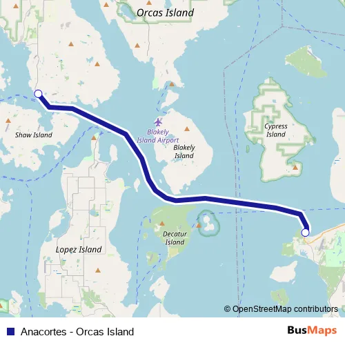 Additional information: Anacortes - Orcas Island has 2 stops and the total trip duration for this route is approximately 75 minutes.