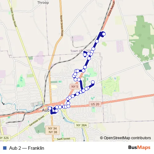 The first stop of the Aub 2 bus route is Dill St & North St and the last stop is Walmart - Auburn. Aub 2 (Franklin) is operational during todos los días.