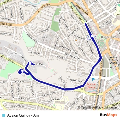 Additional information: Avalon Quincy - Am has 3 stops and the total trip duration for this route is approximately 15 minutes.