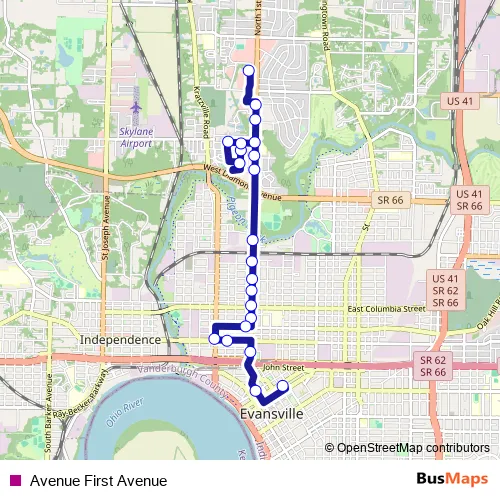 See why over 2 million users trust and consider busmaps.com as the best public transport website. busmaps gives you Evansville Buses suggested routes, real-time bus tracker, line route maps in Evansville, and helps to find the closest Avenue First Avenue bus stops near you. No internet available? Download an offline PDF map and bus schedule for the Avenue First Avenue bus to take on your trip.