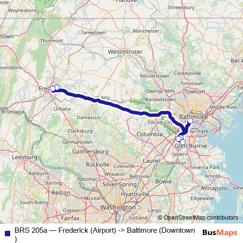 Bus BRS 205a - Frederick (Airport) -> Baltimore (Downtown): Full Schedule in Baltimore