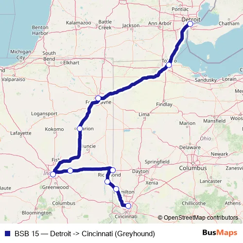 Click here to view the nearest BSB 15 - Detroit -> Cincinnati (Greyhound) bus stop.
