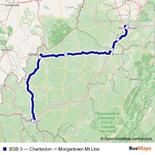 Bus BSB 3 - Charleston -> Morgantown Mt Line in Charleston: Stops & Timetable