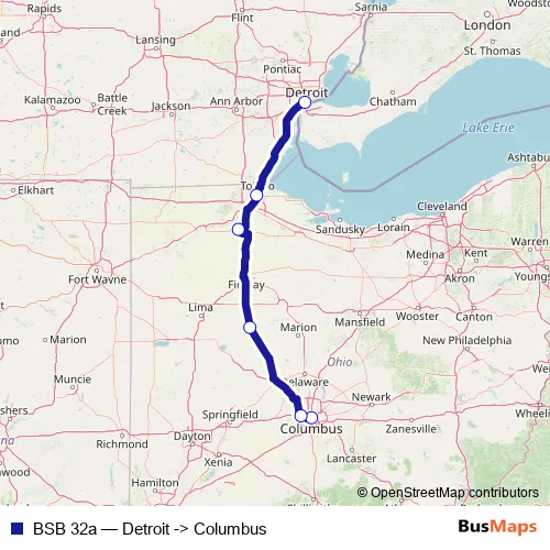 Services on the BSB 32a - Detroit -> Columbus bus stop at 16:50 on lunes, martes, miércoles, jueves, viernes, sábado, domingo.