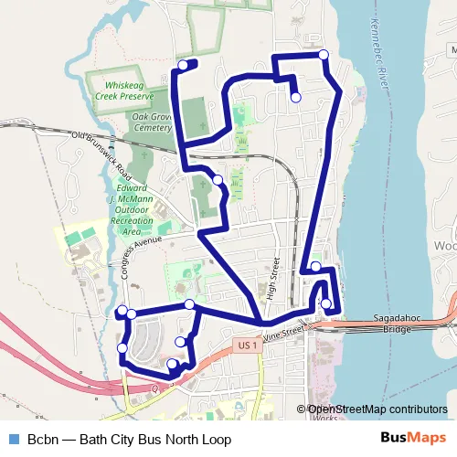 The first stop of the Bcbn bus route is City Hall Front Street and the last stop is City Hall Front Street. Bcbn (Bath City Bus North Loop) is operational during entre semana.
