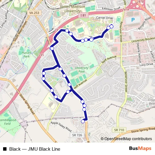 Bus Black - JMU Black Line in Harrisonburg: Stops & Timetable