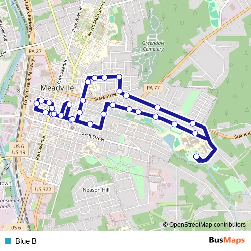 See why over 2 million users trust and consider busmaps.com as the best public transport website. busmaps gives you Meadville Buses suggested routes, real-time bus tracker, line route maps in Meadville, and helps to find the closest Blue B bus stops near you. No internet available? Download an offline PDF map and bus schedule for the Blue B bus to take on your trip.