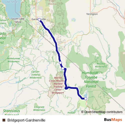 See why over 2 million users trust and consider busmaps.com as the best public transport website. busmaps gives you Minden Buses suggested routes, real-time bus tracker, line route maps in Minden, and helps to find the closest Bridgeport-Gardnerville bus stops near you. No internet available? Download an offline PDF map and bus schedule for the Bridgeport-Gardnerville bus to take on your trip.