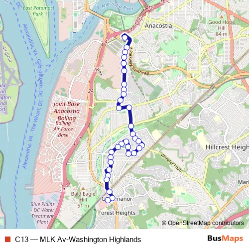 Bus C13 - MLK Av-Washington Highlands in Washington: Stops & Timetable