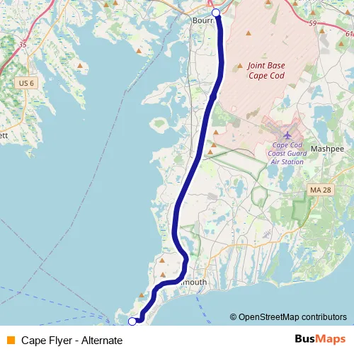 See why over 2 million users trust and consider busmaps.com as the best public transport website. busmaps gives you Bourne Buses suggested routes, real-time bus tracker, line route maps in Bourne, and helps to find the closest Cape Flyer - Alternate bus stops near you. No internet available? Download an offline PDF map and bus schedule for the Cape Flyer - Alternate bus to take on your trip.