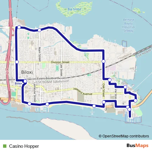 See why over 2 million users trust and consider busmaps.com as the best public transport website. busmaps gives you Biloxi Buses suggested routes, real-time bus tracker, line route maps in Biloxi, and helps to find the closest Casino Hopper bus stops near you. No internet available? Download an offline PDF map and bus schedule for the Casino Hopper bus to take on your trip.