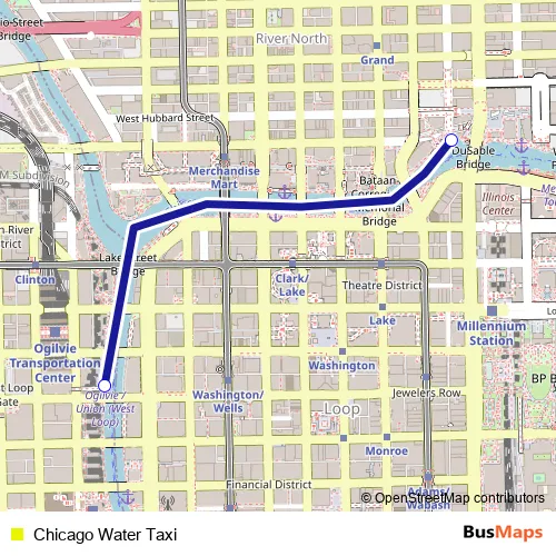 See why over 2 million users trust and consider busmaps.com as the best public transport website. busmaps gives you Chicago Ferries suggested routes, real-time bus tracker, line route maps in Chicago, and helps to find the closest Chicago Water Taxi ferry stops near you. No internet available? Download an offline PDF map and bus schedule for the Chicago Water Taxi ferry to take on your trip.