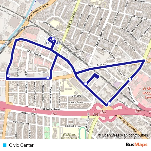 See why over 2 million users trust and consider busmaps.com as the best public transport website. busmaps gives you El Monte Buses suggested routes, real-time bus tracker, line route maps in El Monte, and helps to find the closest Civic Center bus stops near you. No internet available? Download an offline PDF map and bus schedule for the Civic Center bus to take on your trip.