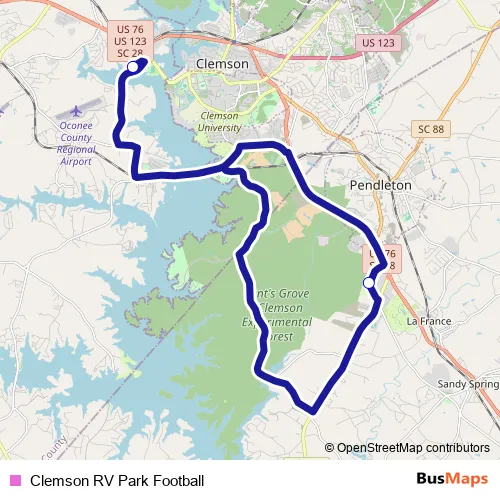 Clemson RV Park Football bus Route Map