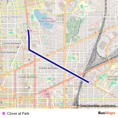 The first stop of the Clover at Park bus route is The Lanes Apt and the last stop is Georgia Ave & Howard Pl. Clover at Park (Clover at Park) is operational during todos los días.