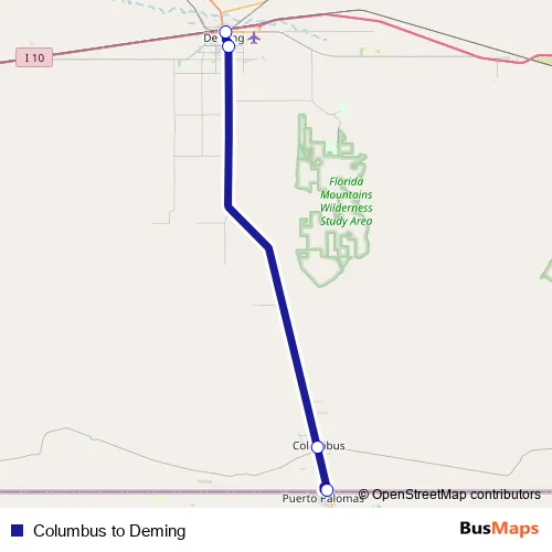 See why over 2 million users trust and consider busmaps.com as the best public transport website. busmaps gives you Deming Buses suggested routes, real-time bus tracker, line route maps in Deming, and helps to find the closest Columbus to Deming bus stops near you. No internet available? Download an offline PDF map and bus schedule for the Columbus to Deming bus to take on your trip.