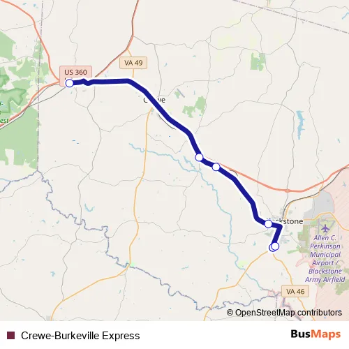 Crewe-Burkeville Express bus Route Map