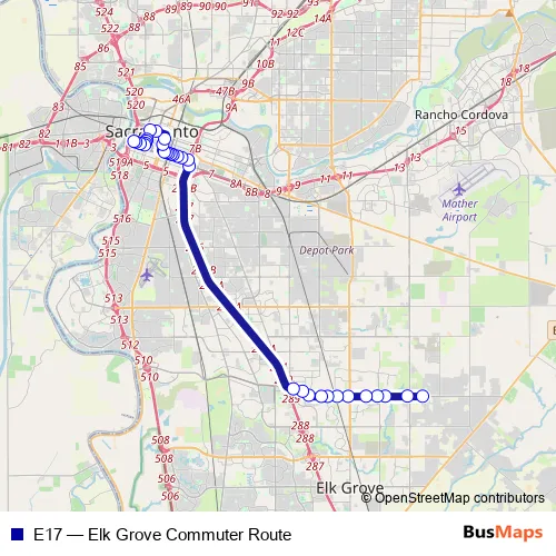 Bus E17 - Elk Grove Commuter Route Schedule in Sacramento