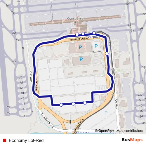 Additional information: Economy Lot-Red has 7 stops and the total trip duration for this route is approximately 12 minutes.