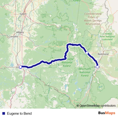 See why over 2 million users trust and consider busmaps.com as the best public transport website. busmaps gives you Eugene Buses suggested routes, real-time bus tracker, line route maps in Eugene, and helps to find the closest Eugene to Bend bus stops near you. No internet available? Download an offline PDF map and bus schedule for the Eugene to Bend bus to take on your trip.