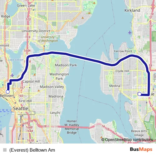 Additional information: (Everest) Belltown Am has 2 stops and the total trip duration for this route is approximately 30 minutes.