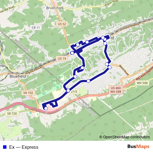 See why over 2 million users trust and consider busmaps.com as the best public transport website. busmaps gives you Bluefield Buses suggested routes, real-time bus tracker, line route maps in Bluefield, and helps to find the closest Ex bus stops near you. No internet available? Download an offline PDF map and bus schedule for the Ex bus to take on your trip.