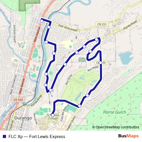 See why over 2 million users trust and consider busmaps.com as the best public transport website. busmaps gives you Durango Buses suggested routes, real-time bus tracker, line route maps in Durango, and helps to find the closest FLC Xp bus stops near you. No internet available? Download an offline PDF map and bus schedule for the FLC Xp bus to take on your trip.