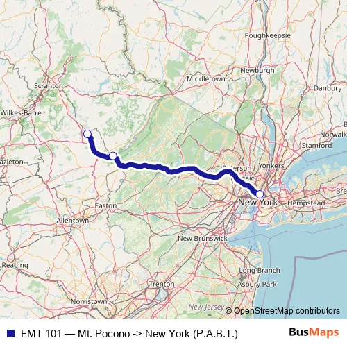 Click here to view the nearest FMT 101 - Mt. Pocono -> New York (P.A.B.T.) bus stop.