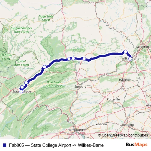 Click here to view the nearest Fab805 - State College Airport -> Wilkes-Barre bus stop.