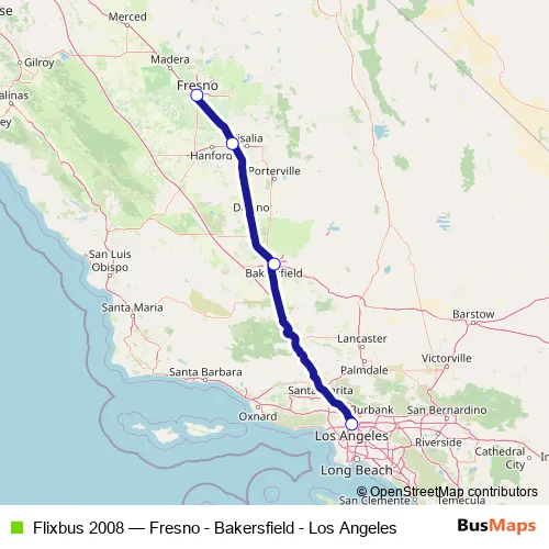 Click here to view the nearest Flixbus 2008 - Fresno - Bakersfield - Los Angeles bus stop.
