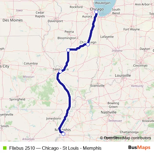 Click here to view the nearest Flixbus 2510 - Chicago - St Louis - Memphis bus stop.