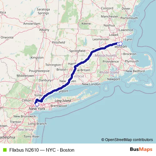 Click here to view the nearest Flixbus N2610 - NYC - Boston bus stop.
