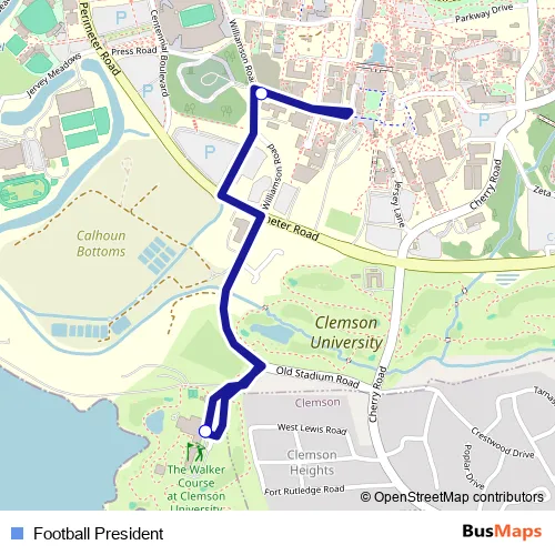 See why over 2 million users trust and consider busmaps.com as the best public transport website. busmaps gives you Clemson Buses suggested routes, real-time bus tracker, line route maps in Clemson, and helps to find the closest Football President bus stops near you. No internet available? Download an offline PDF map and bus schedule for the Football President bus to take on your trip.
