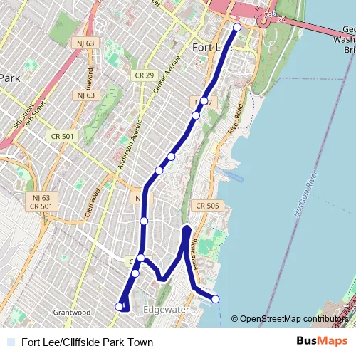 Additional information: Fort Lee/Cliffside Park Town has 10 stops and the total trip duration for this route is approximately 17 minutes.