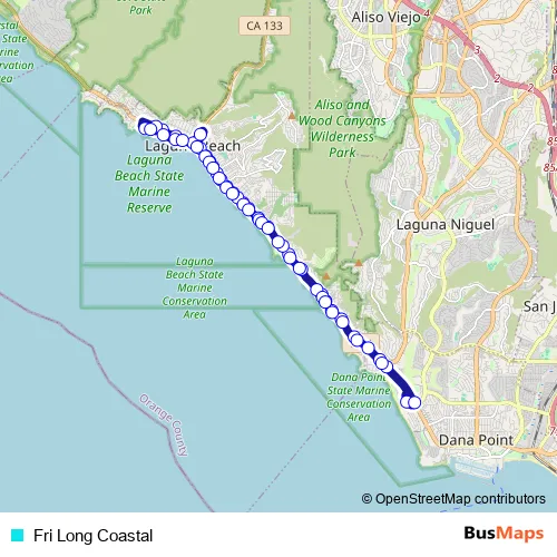 See why over 2 million users trust and consider busmaps.com as the best public transport website. busmaps gives you Laguna Beach Buses suggested routes, real-time bus tracker, line route maps in Laguna Beach, and helps to find the closest Fri Long Coastal bus stops near you. No internet available? Download an offline PDF map and bus schedule for the Fri Long Coastal bus to take on your trip.