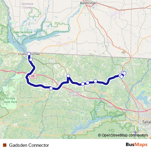 Additional information: Gadsden Connector has 11 stops and the total trip duration for this route is approximately 160 minutes.