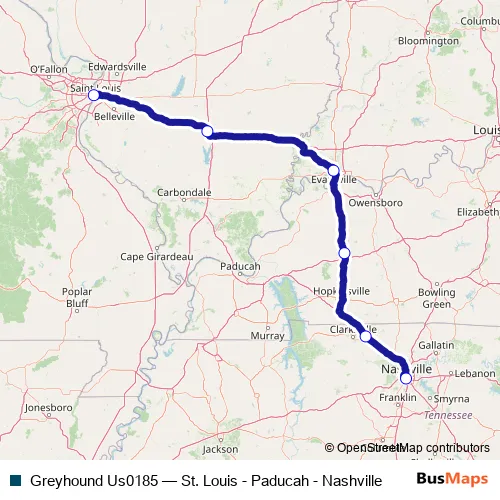 Click here to view the nearest Greyhound Us0185 - St. Louis - Paducah - Nashville bus stop.