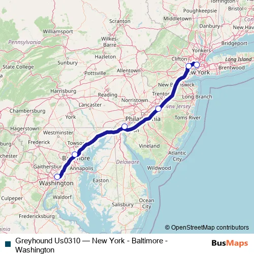 Click here to view the nearest Greyhound Us0310 - New York - Baltimore - Washington bus stop.