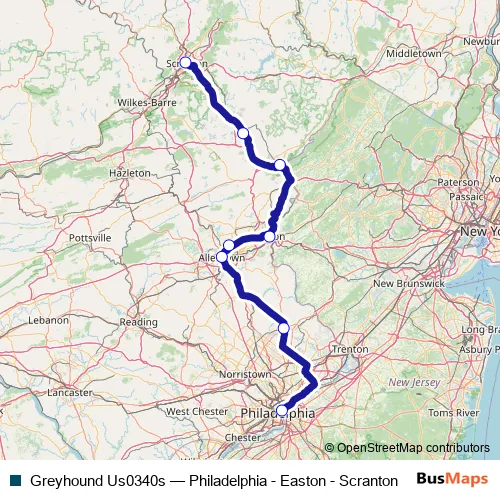 Click here to view the nearest Greyhound Us0340s - Philadelphia - Easton - Scranton bus stop.