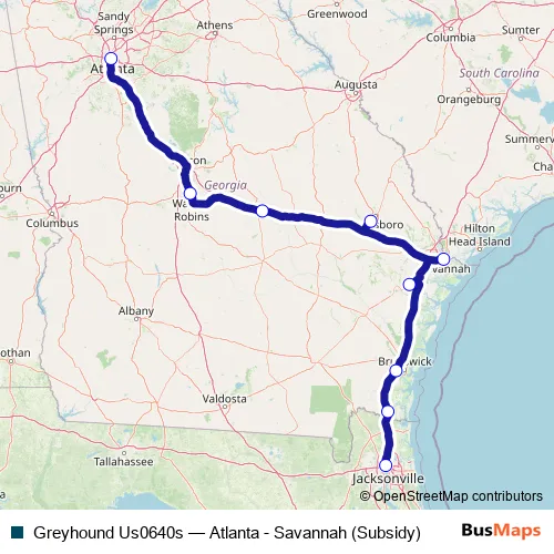 Click here to view the nearest Greyhound Us0640s - Atlanta - Savannah (Subsidy) bus stop.
