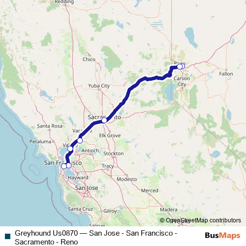 Click here to view the nearest Greyhound Us0870 - San Jose - San Francisco - Sacramento - Reno bus stop.