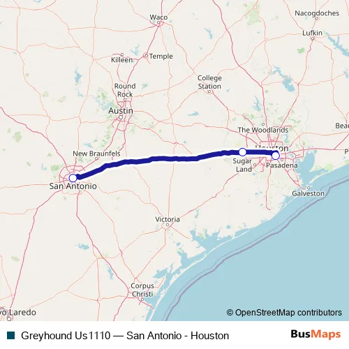 Click here to view the nearest Greyhound Us1110 - San Antonio - Houston bus stop.
