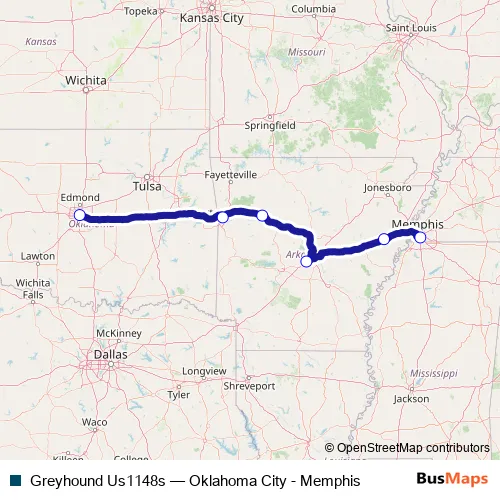 Click here to view the nearest Greyhound Us1148s - Oklahoma City - Memphis bus stop.
