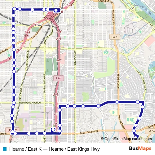 See why over 2 million users trust and consider busmaps.com as the best public transport website. busmaps gives you Shreveport Buses suggested routes, real-time bus tracker, line route maps in Shreveport, and helps to find the closest Hearne / East K bus stops near you. No internet available? Download an offline PDF map and bus schedule for the Hearne / East K bus to take on your trip.