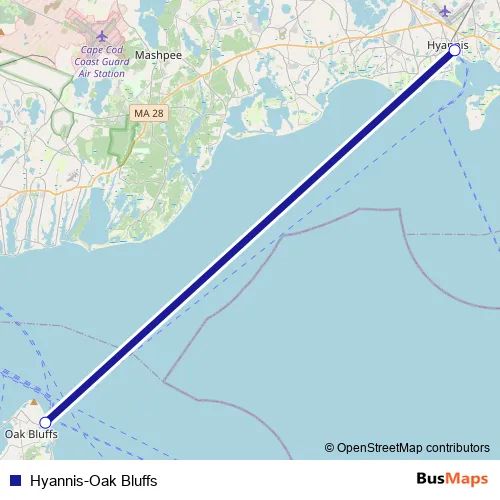 See why over 2 million users trust and consider busmaps.com as the best public transport website. busmaps gives you Hyannis Ferries suggested routes, real-time bus tracker, line route maps in Hyannis, and helps to find the closest Hyannis-Oak Bluffs ferry stops near you. No internet available? Download an offline PDF map and bus schedule for the Hyannis-Oak Bluffs ferry to take on your trip.