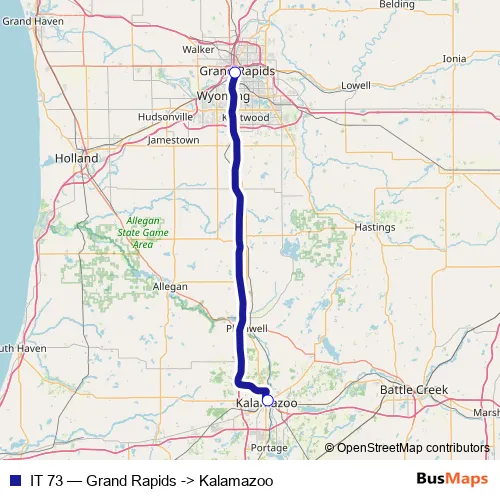 Click here to view the nearest IT 73 - Grand Rapids -> Kalamazoo bus stop.