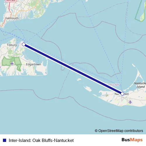 Additional information: Inter-Island: Oak Bluffs-Nantucket has 2 stops and the total trip duration for this route is approximately 70 minutes.