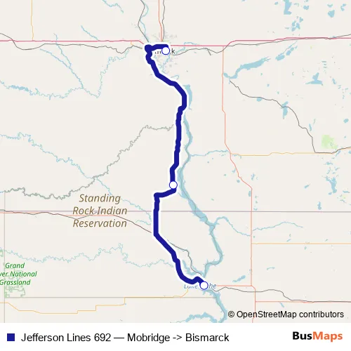 Click here to view the nearest Jefferson Lines 692 - Mobridge -> Bismarck bus stop.