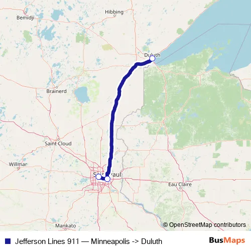 Click here to view the nearest Jefferson Lines 911 - Minneapolis -> Duluth bus stop.
