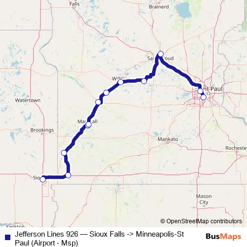 Click here to view the nearest Jefferson Lines 926 - Sioux Falls -> Minneapolis-St Paul (Airport - Msp) bus stop.